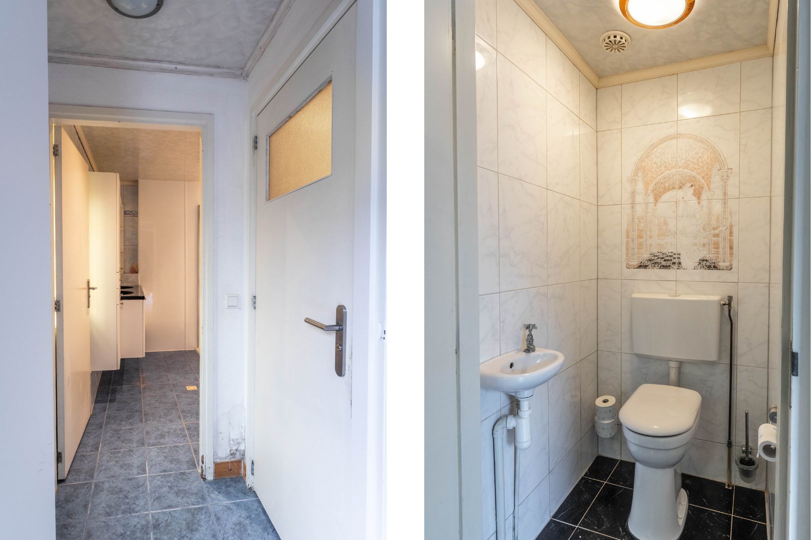 Aan de achterzijde bevindt zich een tussenhal met achterentree, toegang tot het toilet met wandcloset en fonteintje en de badkamer dit het afgelopen jaar een update heeft gehad met inloopdouche en een dubbele wastafel.