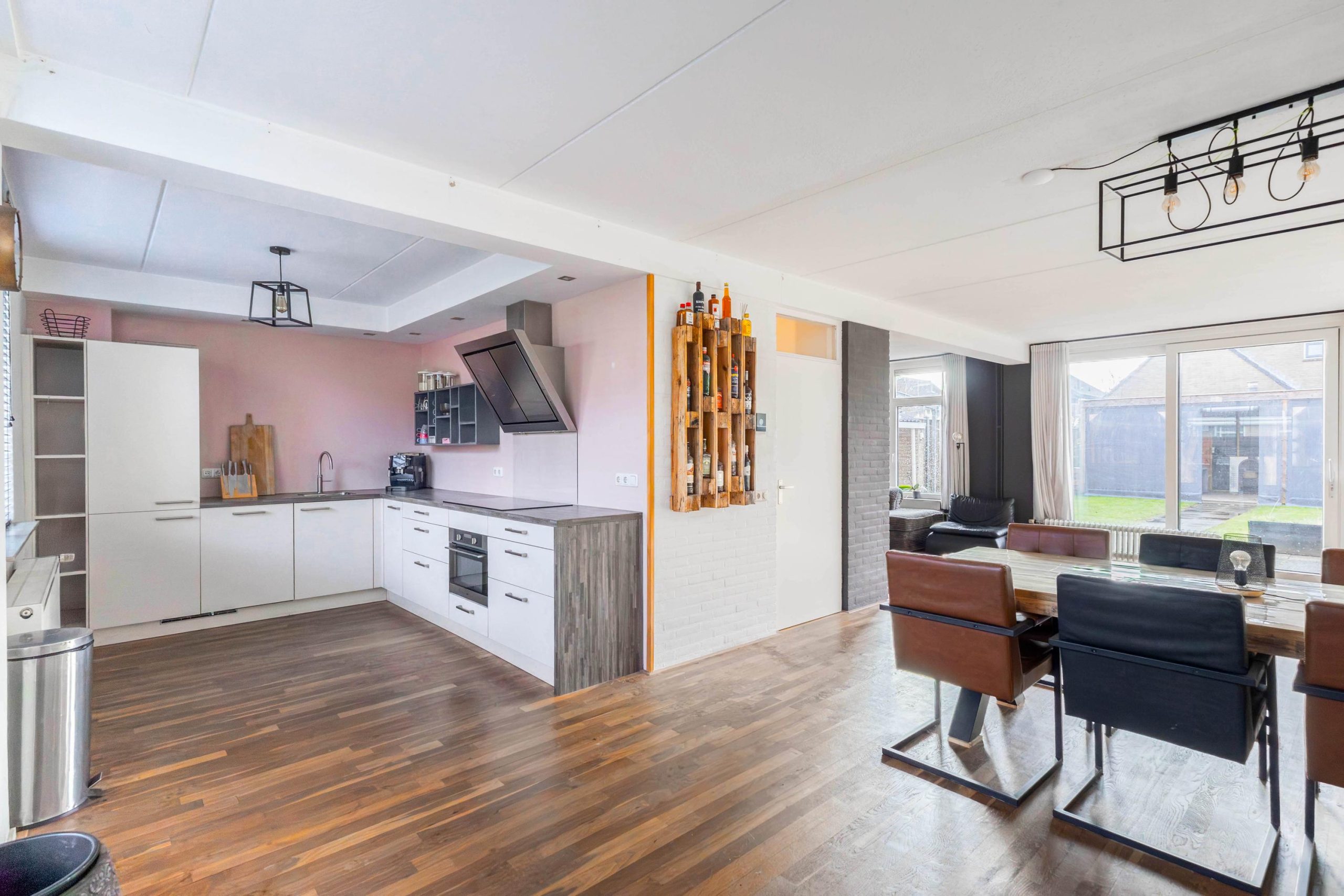 De keuken is in 2017 vernieuwd en heeft een fijne hoekopstelling met moderne apparatuur, waaronder een quooker en een brede inductiekookplaat, waardoor koken hier vanzelfsprekend plezierig is. De tuin sluit daar perfect op aan met een ruime overkapping van circa 6 bij 4 meter, een heerlijke plek om lange avonden door te brengen, met daarnaast een praktische berging.