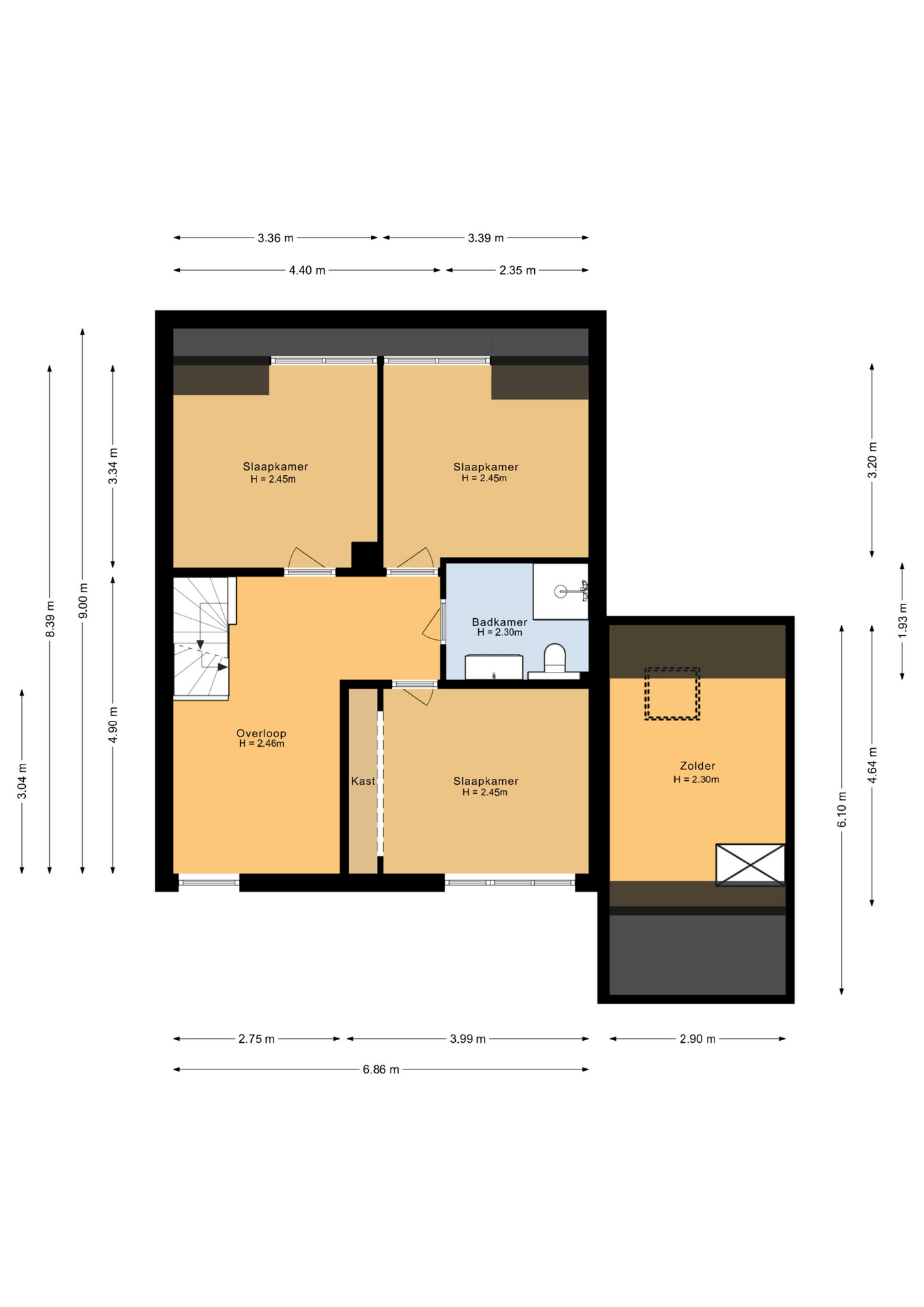 Op de verdieping liggen drie slaapkamers en is er ruimte voor een vierde, ideaal voor een groeiend gezin. De badkamer – eveneens uit 2017 – is modern uitgevoerd met een inloopdouche, een stijlvol wastafelmeubel en een tweede toilet. De tweede verdieping biedt met een zolder van zo’n 28 m² nog meer mogelijkheden: een extra slaapkamer, een rustige werkplek of een speelruimte voor de kinderen.