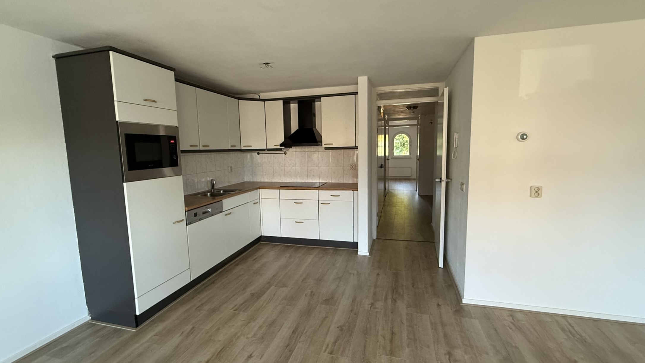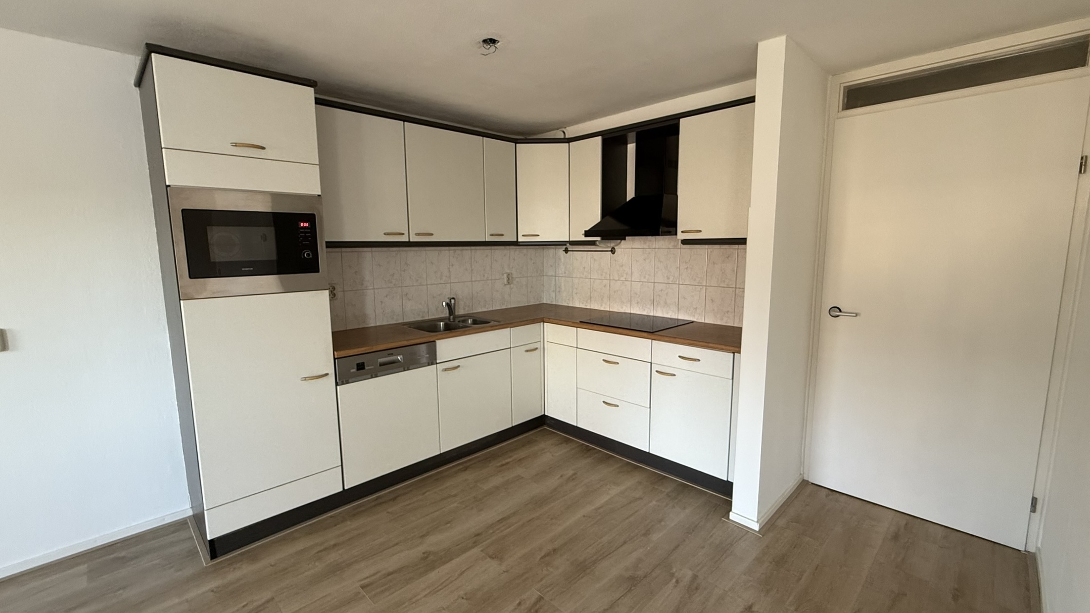 Het appartement met een totaal oppervlak van 92m2 beschikt over een ruime woonkamer en een luxe hoekkeukencombinatie met veel kastruimte en apparatuur, o.a. een koelkast, vaatwasser, combimagnetron, inductie kookplaat en afzuigkap.