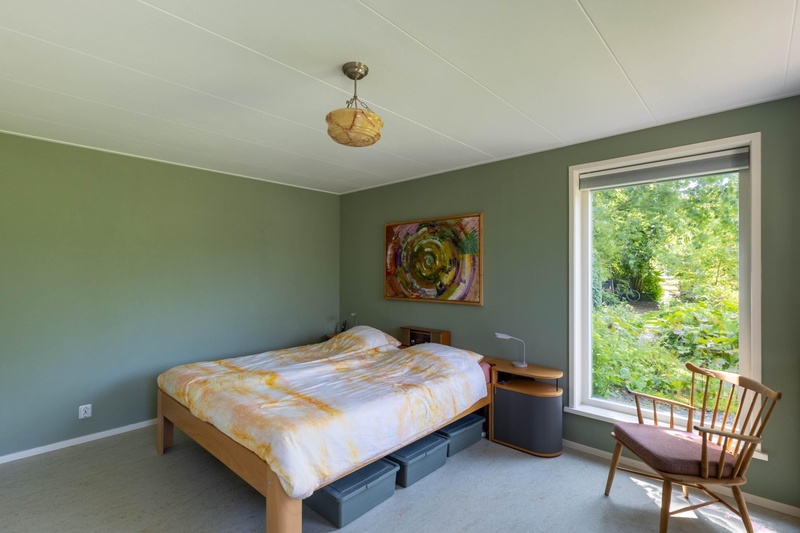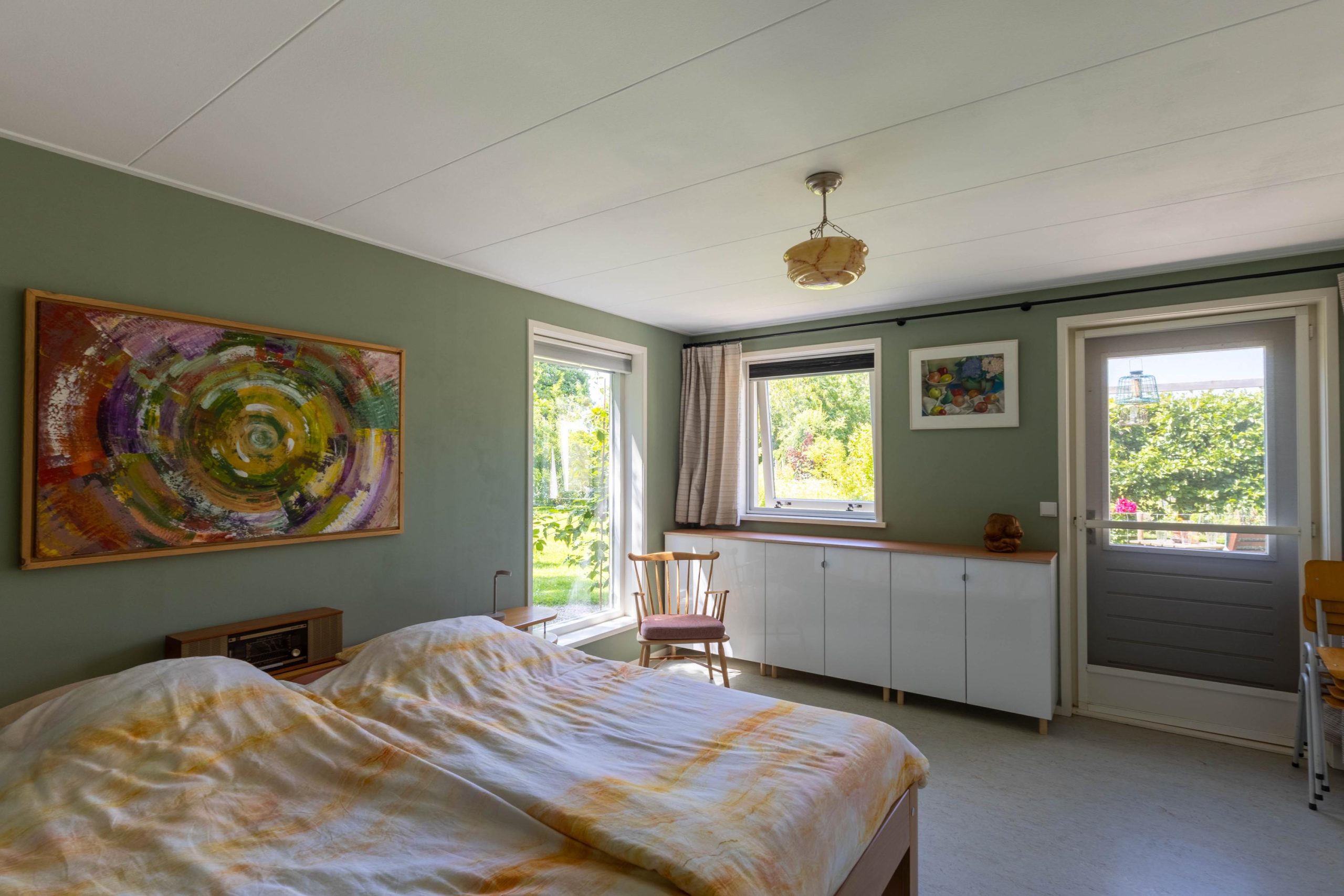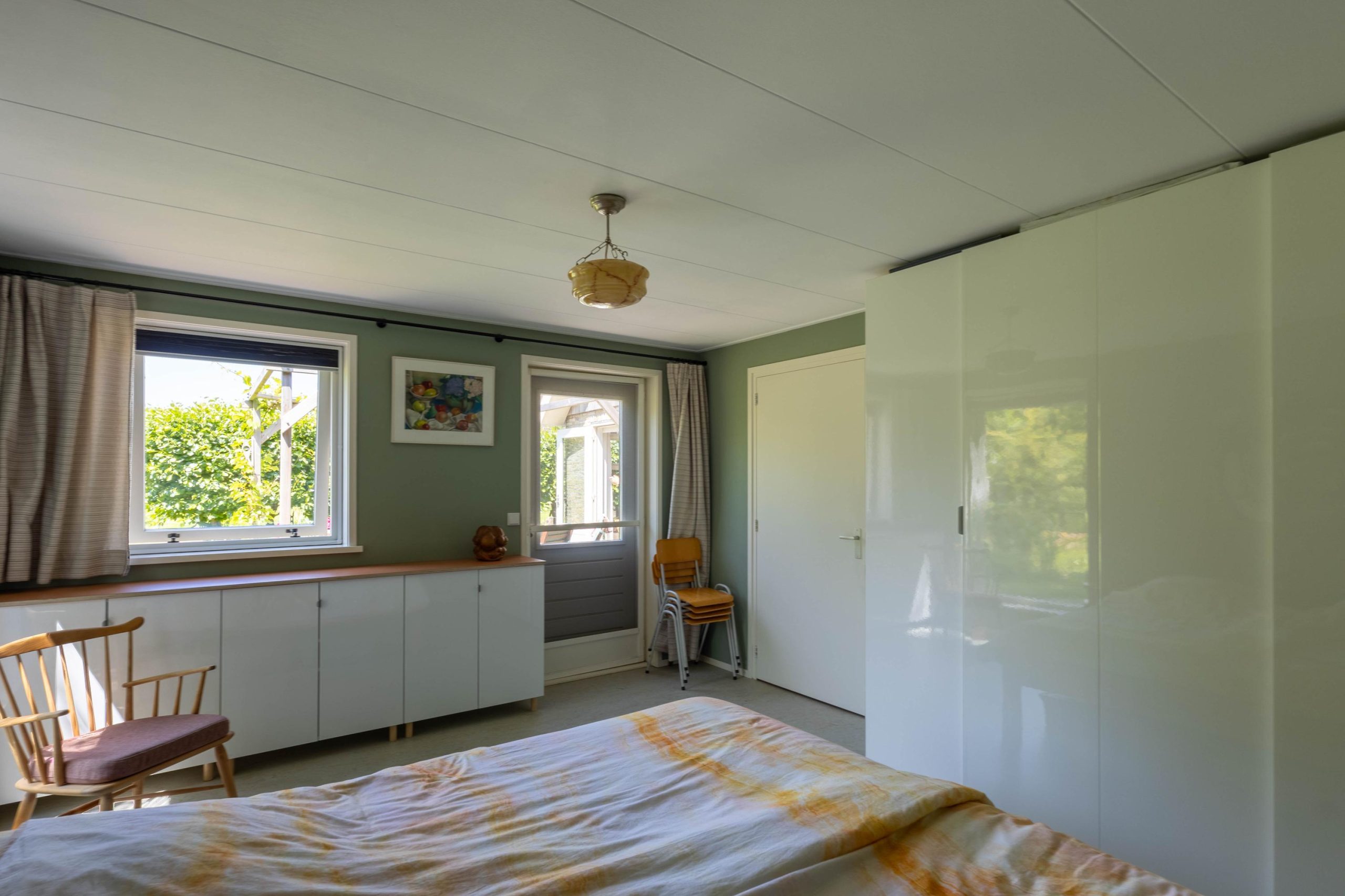 Een tweede slaapkamer, ook geschikt als hobby- of werkkamer, met twee vaste kasten voor extra bergruimte.
