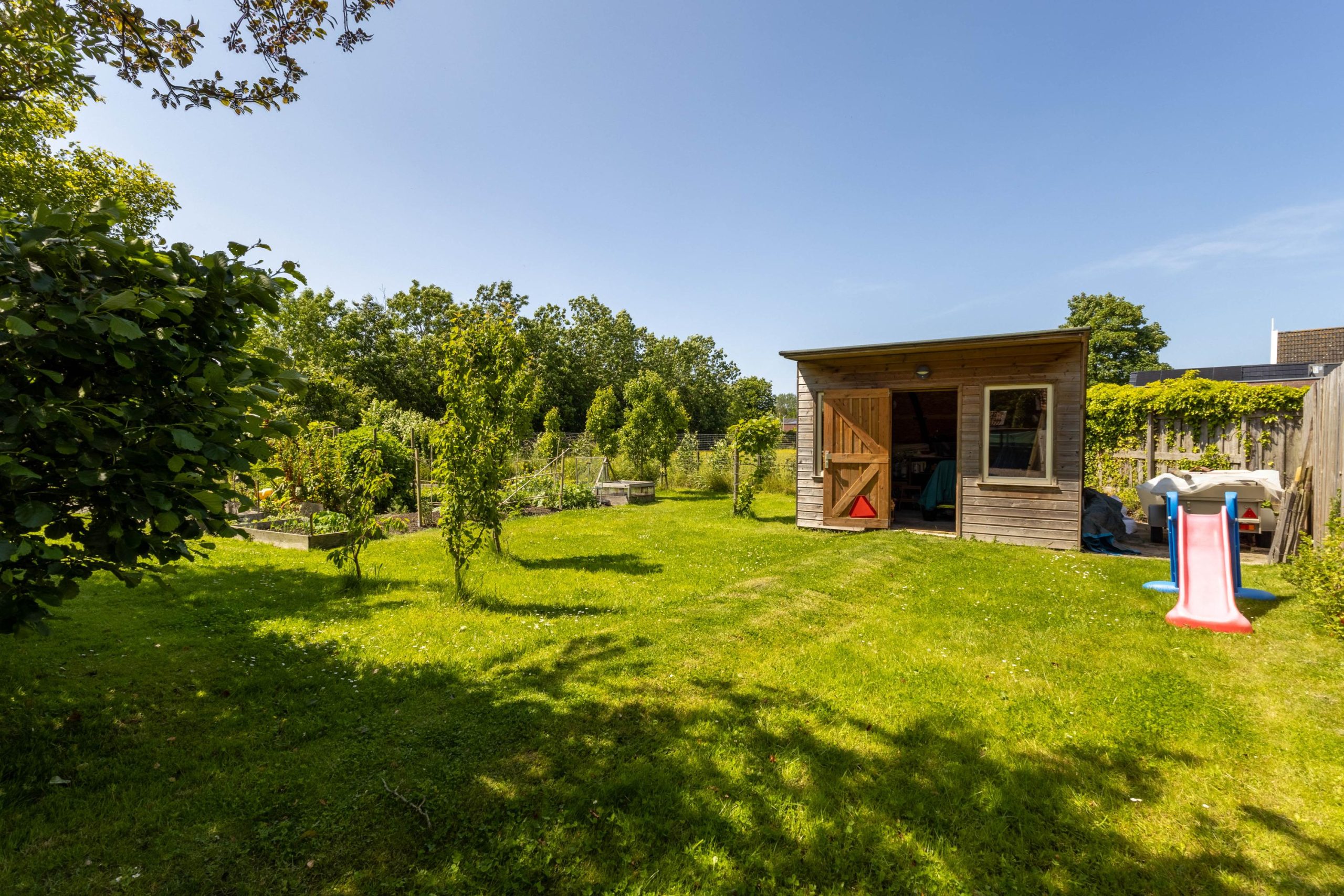 Een prachtige plek tussen het Wad en de klei – hier beleef je elke dag opnieuw het vakantiegevoel. Deze knusse, vrijstaande én levensloopbestendige woning is sinds 2019 volledig gerenoveerd. En de tuin van maar liefst 1.097 m² is een droom die uitkomt voor iedereen die van buitenleven houdt. Sinds 2019 is deze van een eenvoudig grasveldje omgetoverd tot een ware tuin van Eden, met meerdere plekjes om te genieten van rust en zon. Er is een bloementuin, een moestuin, een vrijstaande berging en een kas. Bijen, hommels, vogels, vleermuizen en vlinders zoals de kolibrievlinder en koninginnenpage zijn hier vaste gasten. In de vijver leven kikkers en salamanders. Je beleeft hier alle seizoenen van dichtbij!