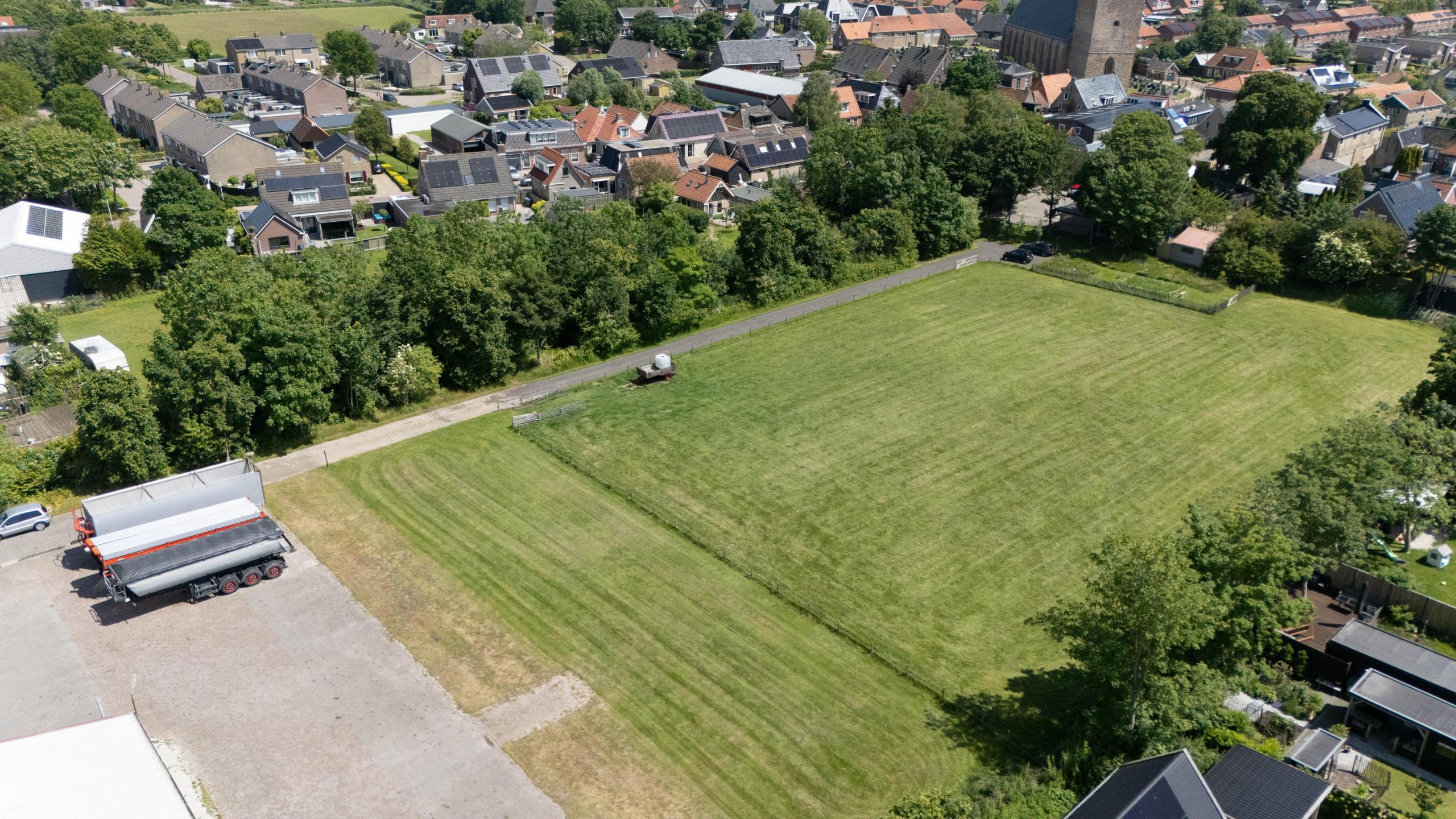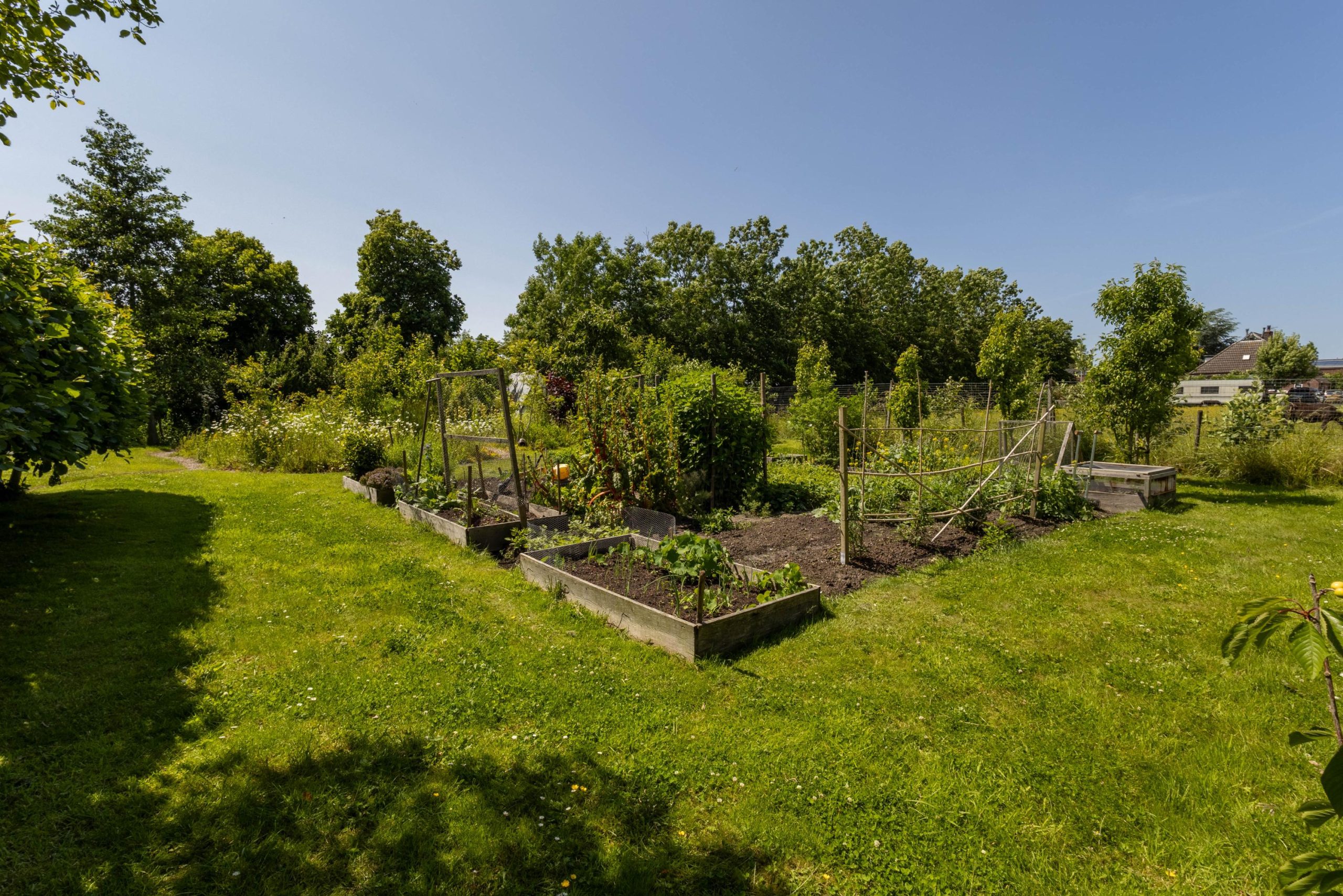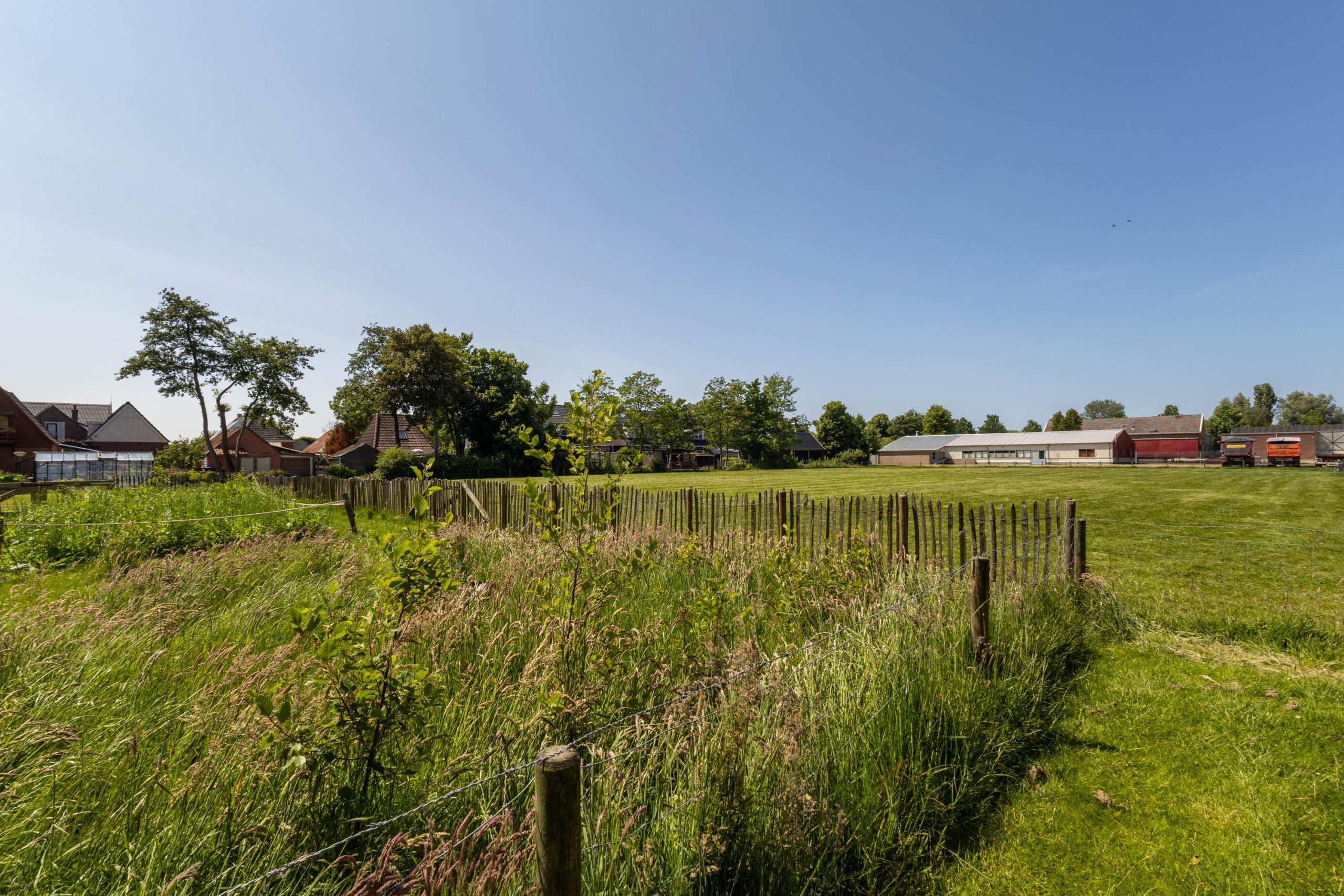 In 2023 is het aangrenzende grasveld van 6.504 m² aangekocht. Dit terrein kan worden gebruikt voor bijvoorbeeld het houden van kleinvee, maar ook een permacultuurtuin of een grote moestuin behoort tot de mogelijkheden. Momenteel grazen hier de schapen van een boer uit het dorp. Langs dit veld loopt een oprijlaan naar de woning, met aan het einde parkeerruimte voor circa 3 tot 4 auto’s.