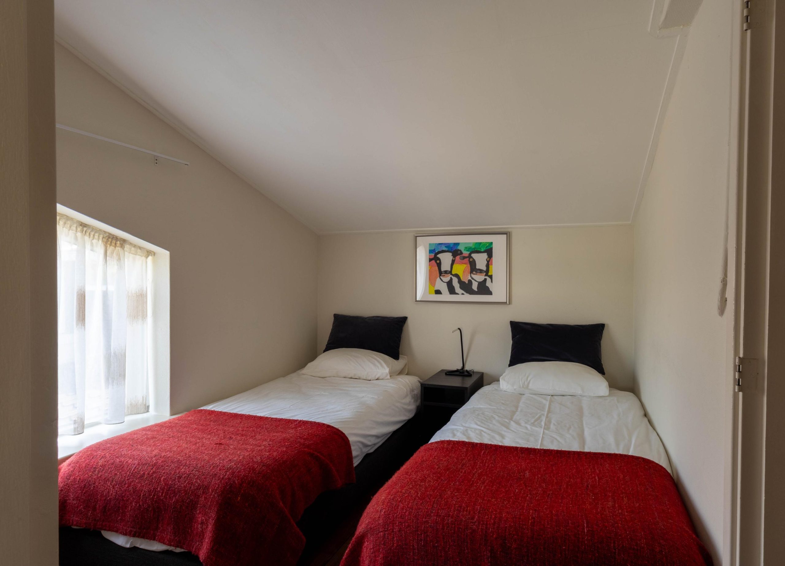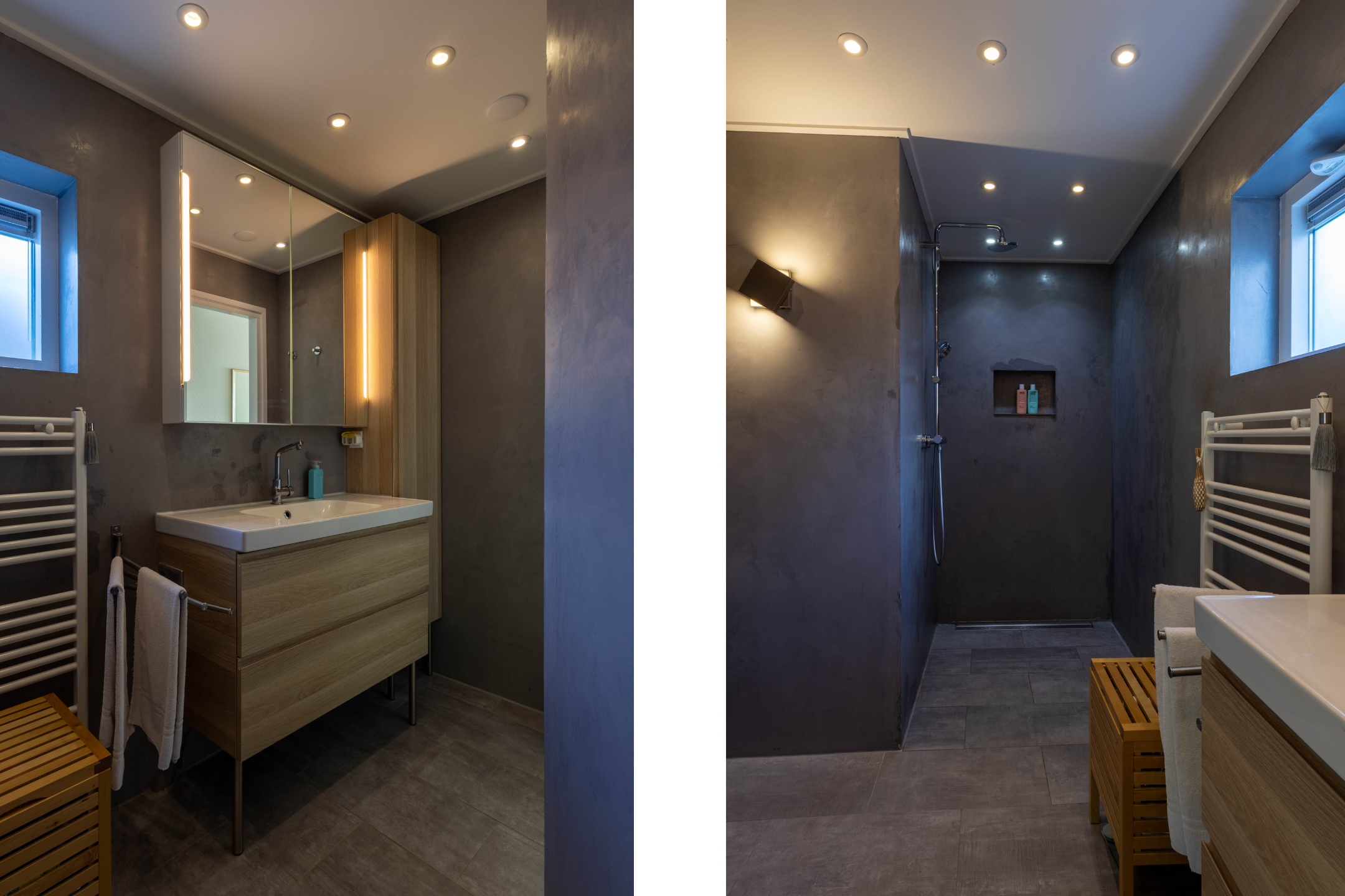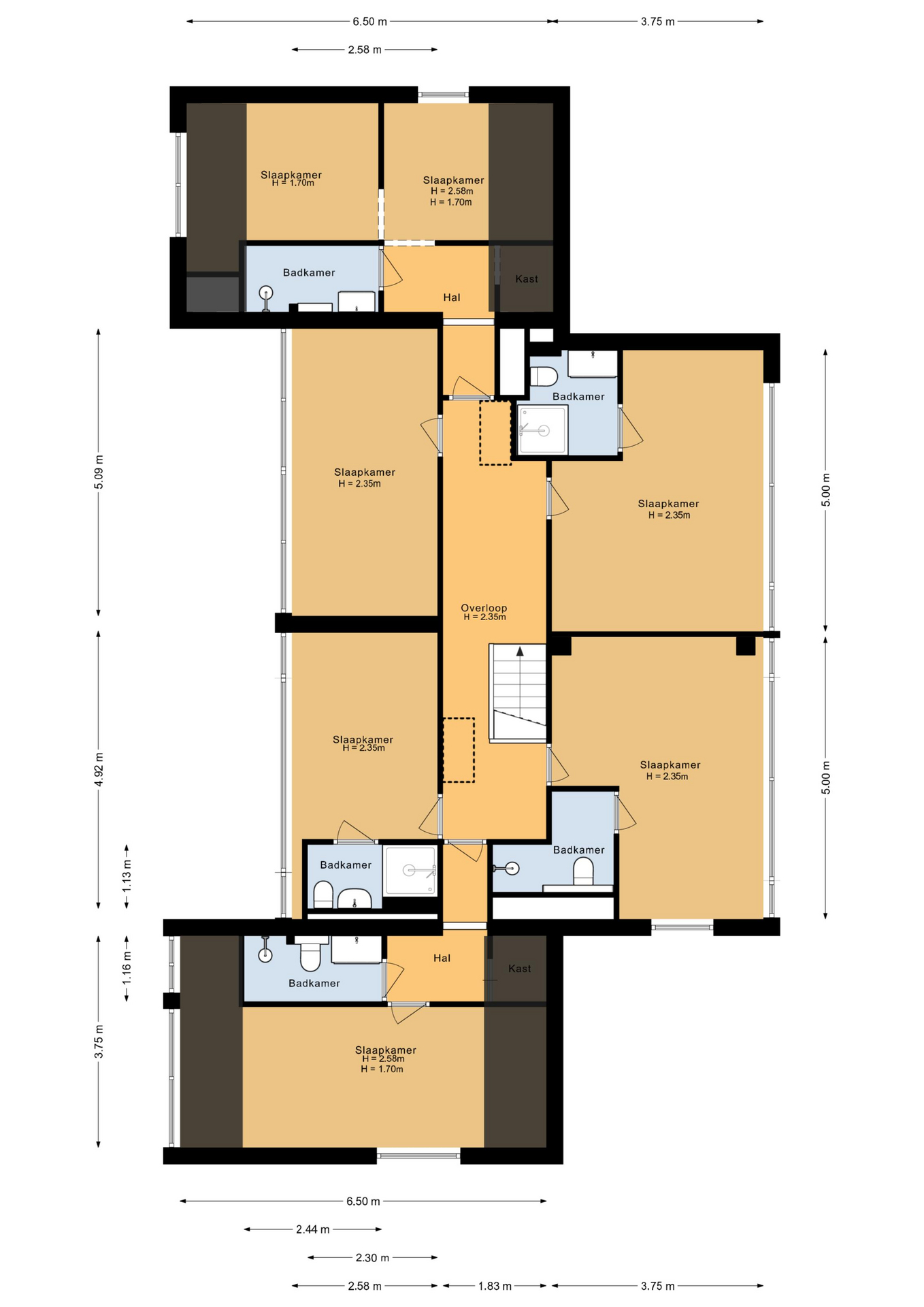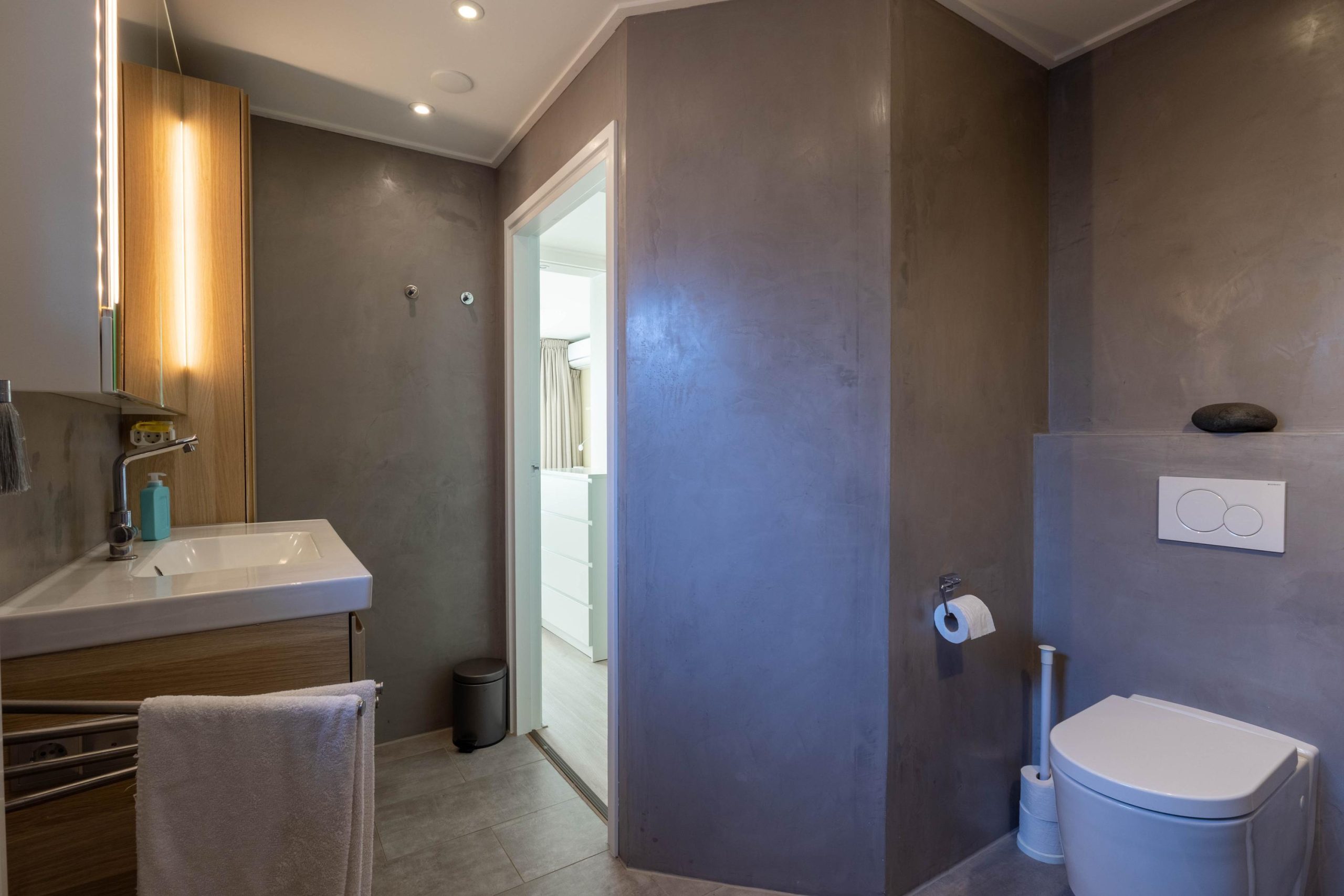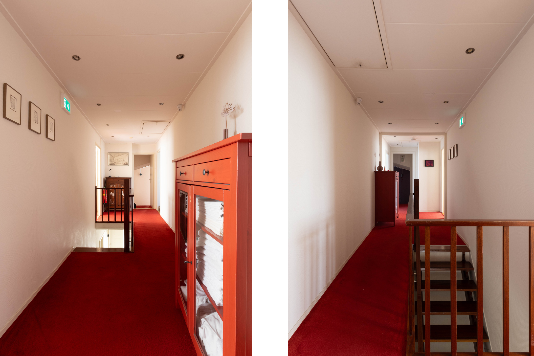 Ruime centrale overloop met tweemaal een vlizotrap naar de zolders. Hier bevinden zich zes slaapkamers, waarvan vijf met een eigen badkamer. Alle slaapkamers zijn voorzien van een airco-unit en alle badkamers beschikken over elektrische vloerverwarming, een douche, wastafel en toilet.