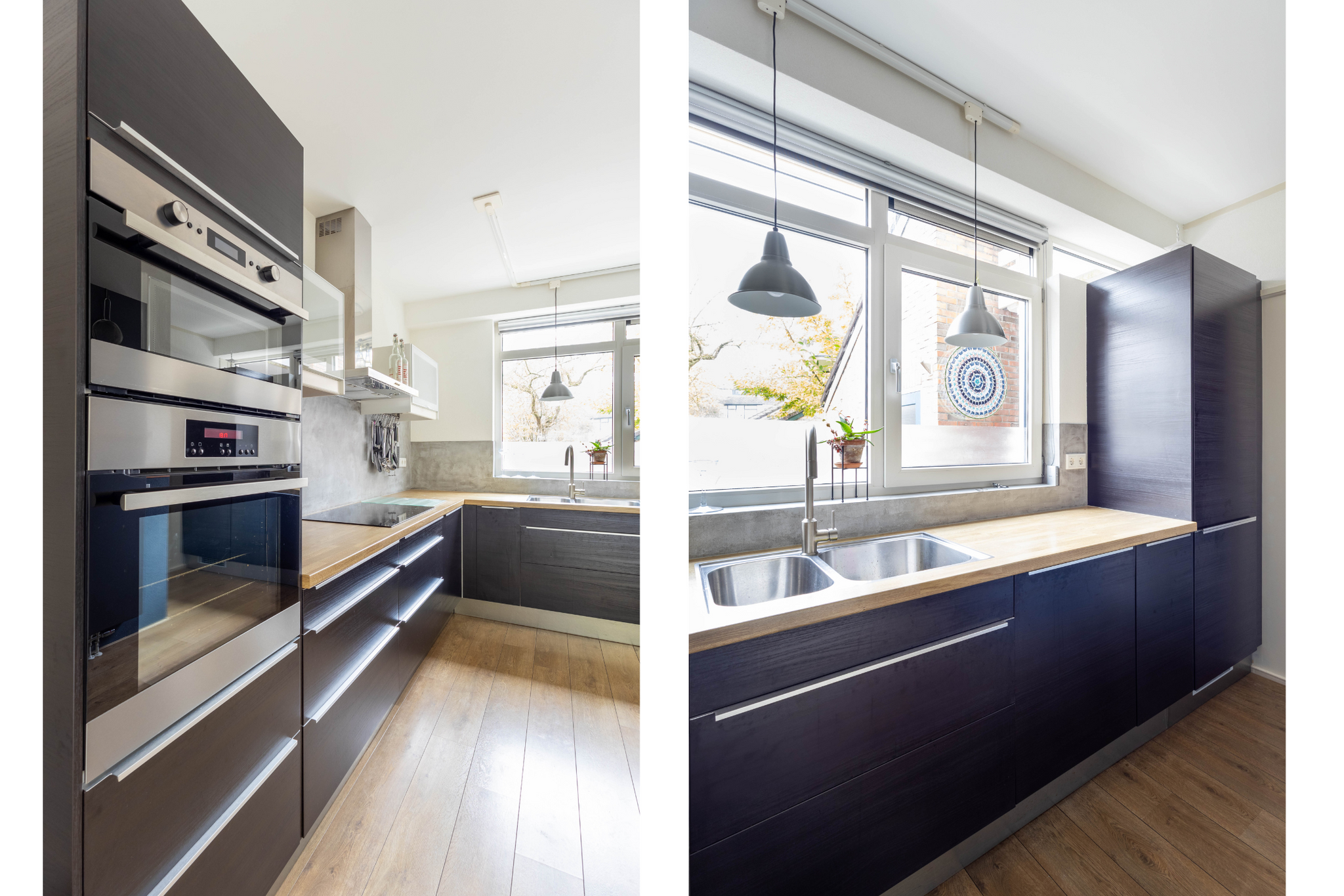 Hal/entree met overdekte voordeur, opgang, toiletruimte met wandcloset en fonteintje. Ruime living met een aangename lichtinval, open keuken met moderne hoekopstelling voorzien van diverse inbouwapparatuur, waaronder een oven, magnetron, inductiekookplaat, wasemkap, vaatwasser, koelkast en een vriezer. Vanuit de woonkamer geniet u van het zicht in de achtertuin en het achtergelegen groen. De tuin is eenvoudig toegankelijk via de openslaande deuren.