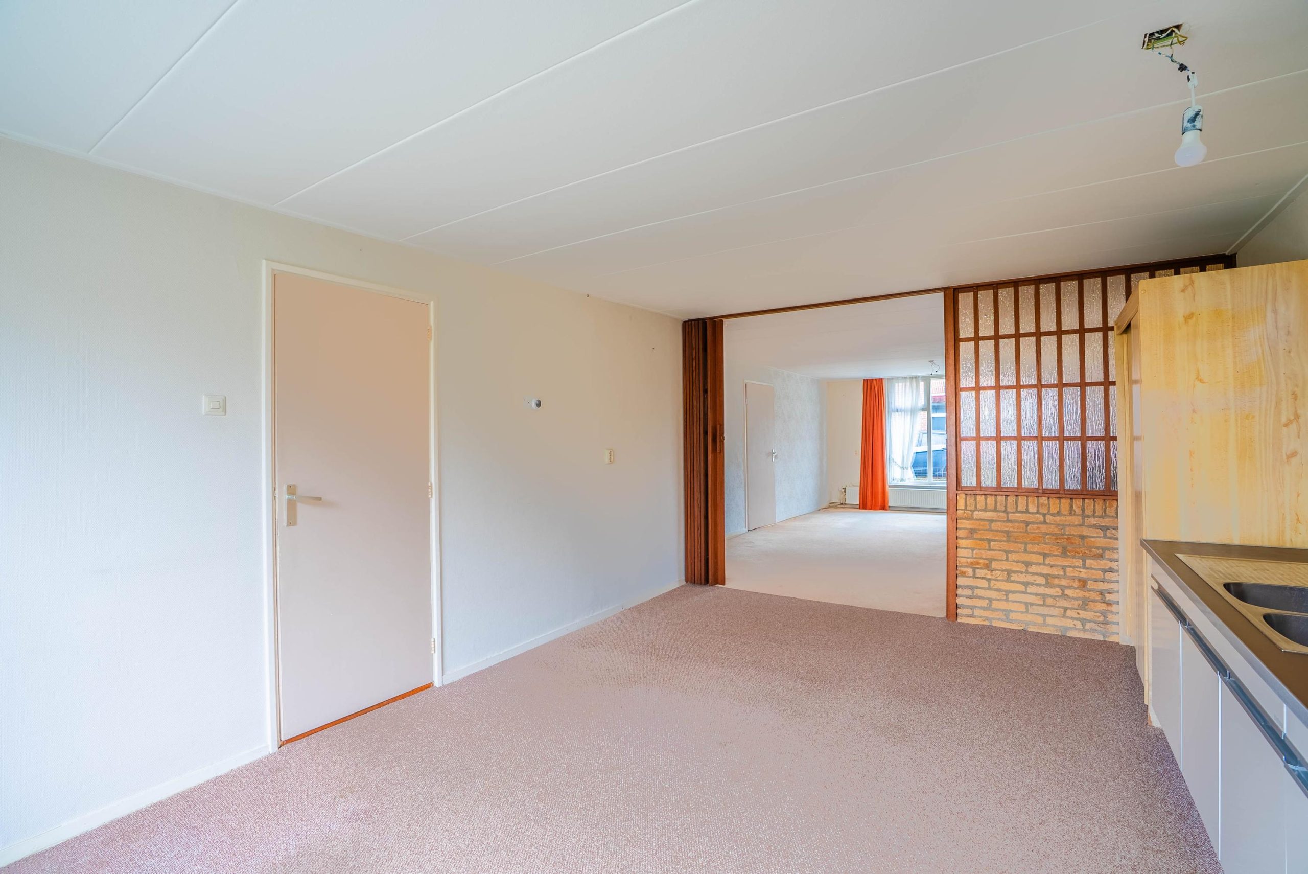 Begane grond: Hal/entree met meterkast en trapopgang naar de verdieping, voorzien van praktische trapkast. De ruime living met open keuken aan de achterzijde (gezamenlijk ca. 48 m²) biedt volop indelingsmogelijkheden. Dankzij de open opzet creëer je hier eenvoudig een moderne woonkeuken met zicht op de tuin. De bijkeuken beschikt over een achterentree, CV-installatie en aansluitingen en afvoer voor de witgoedopstelling. Verder bevindt zich op de begane grond een toiletruimte met wandcloset en fonteintje en een badkamer met douche en wastafelmeubel.