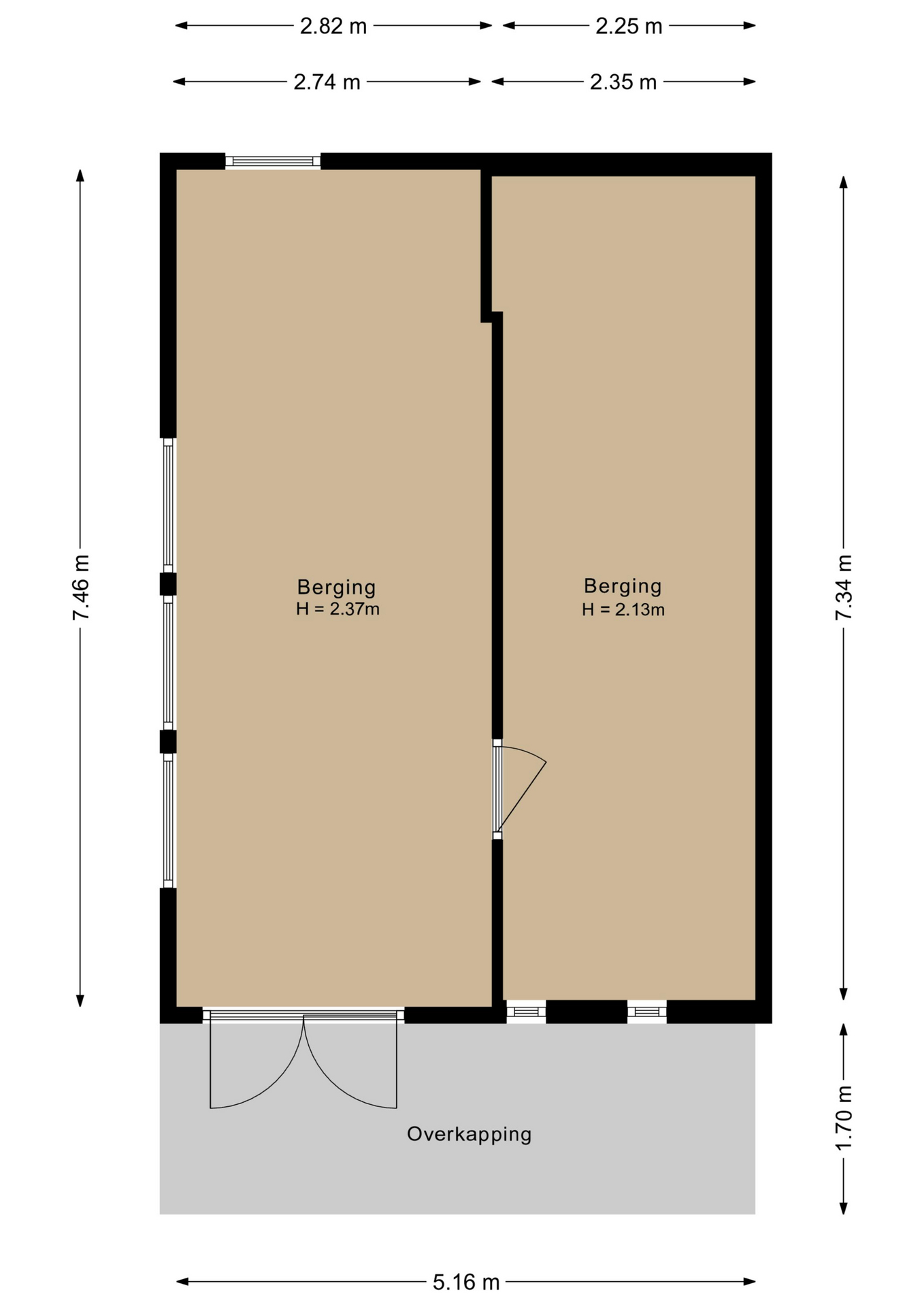 • Vrijstaande garage van ca. 55 m² & separate berging van ca. 38 m²;