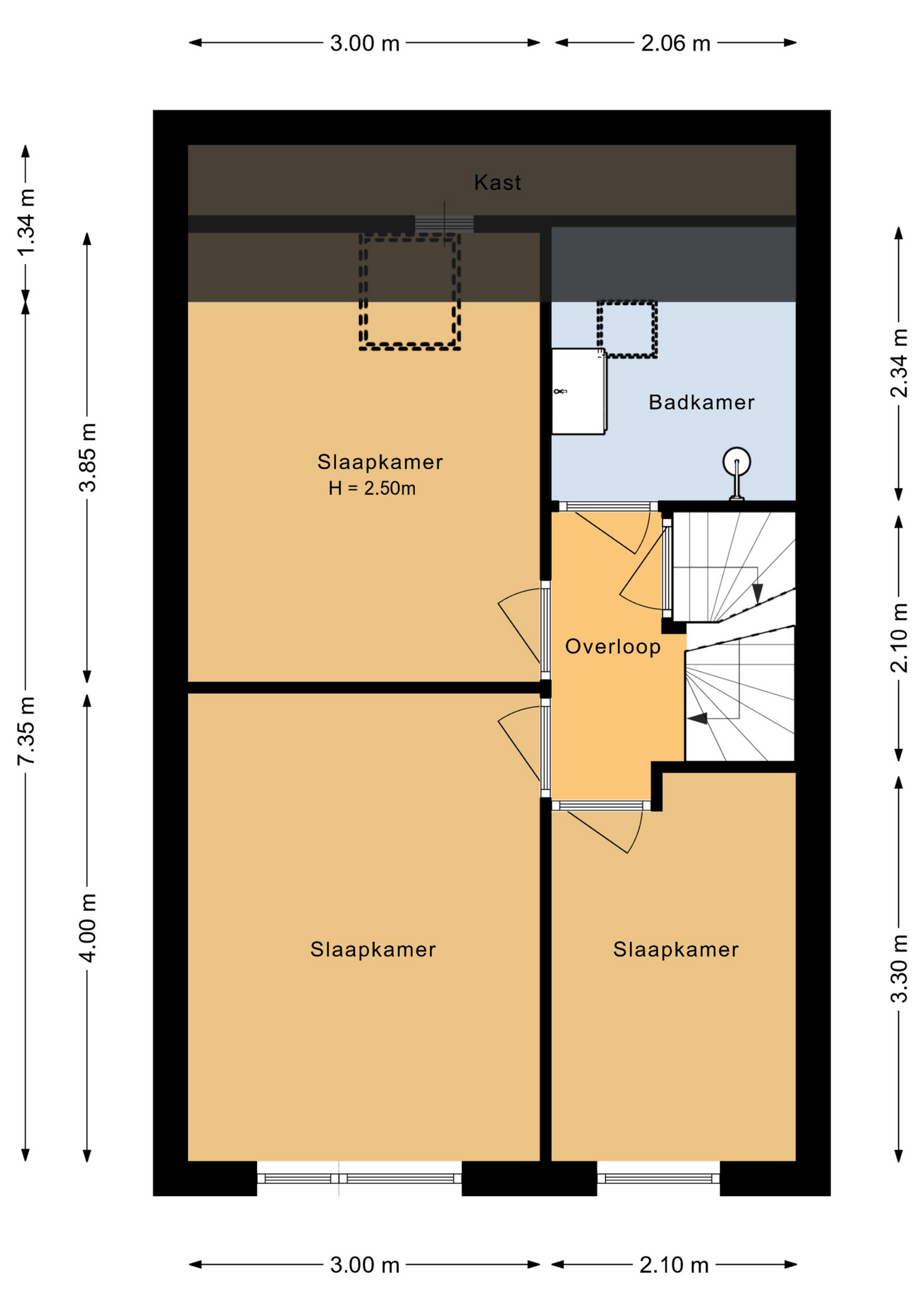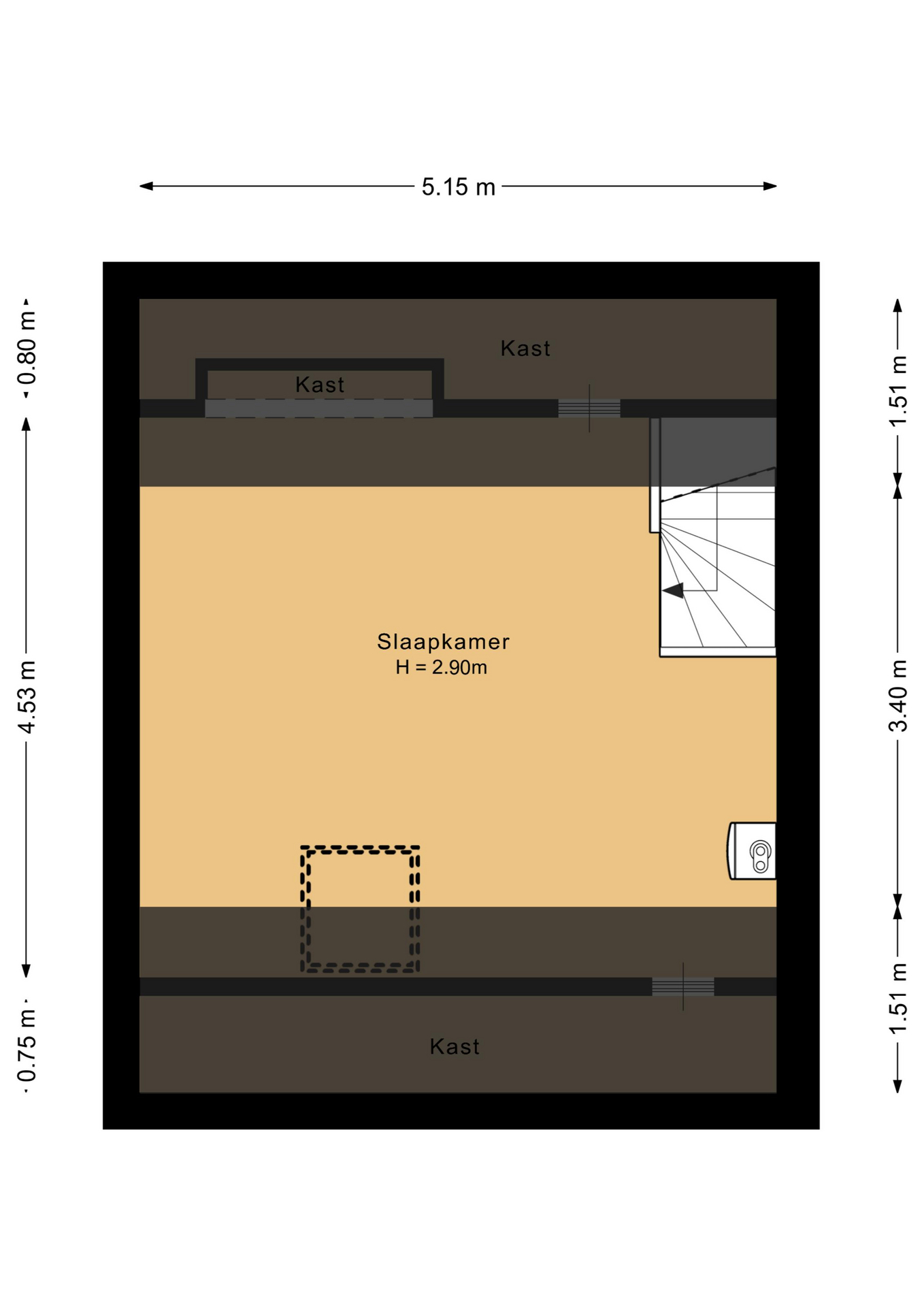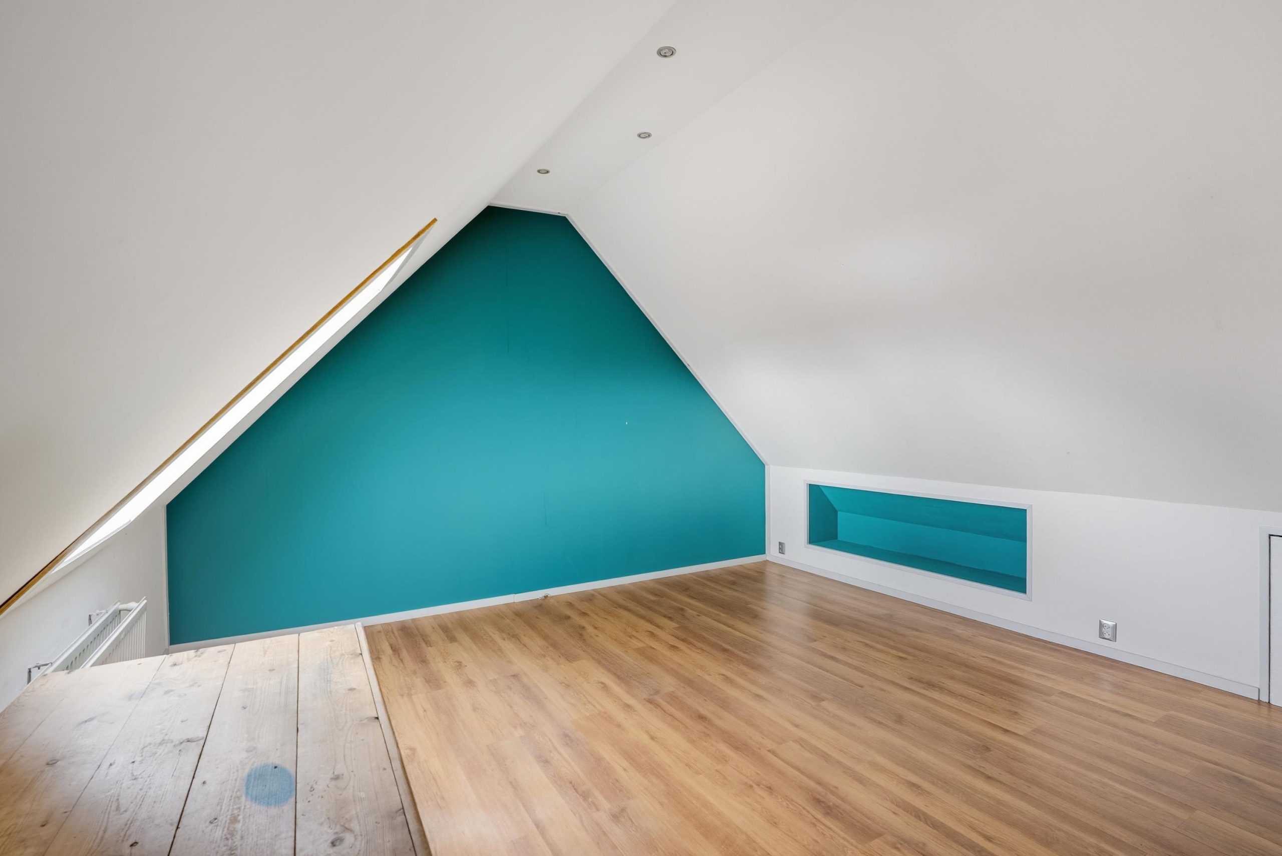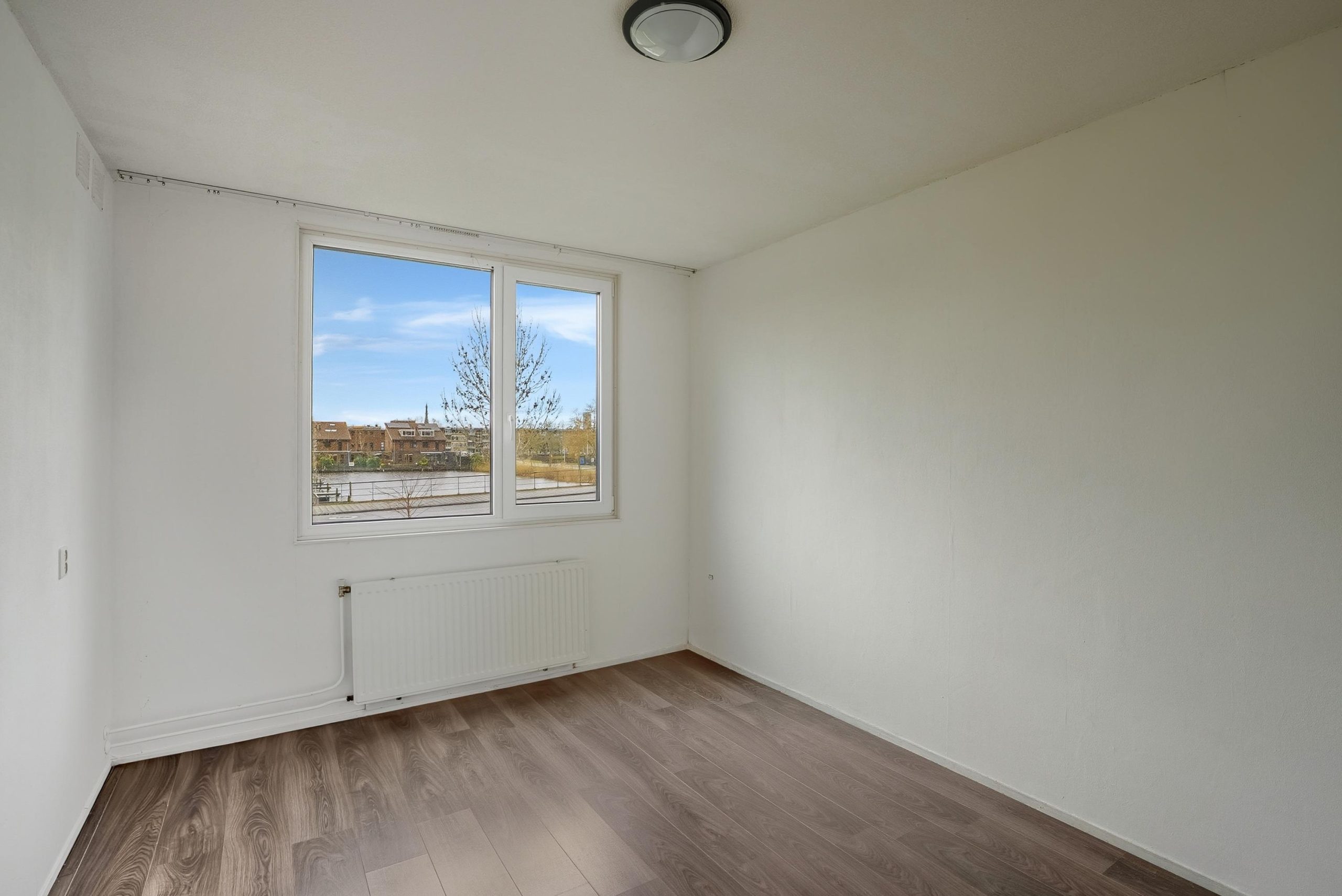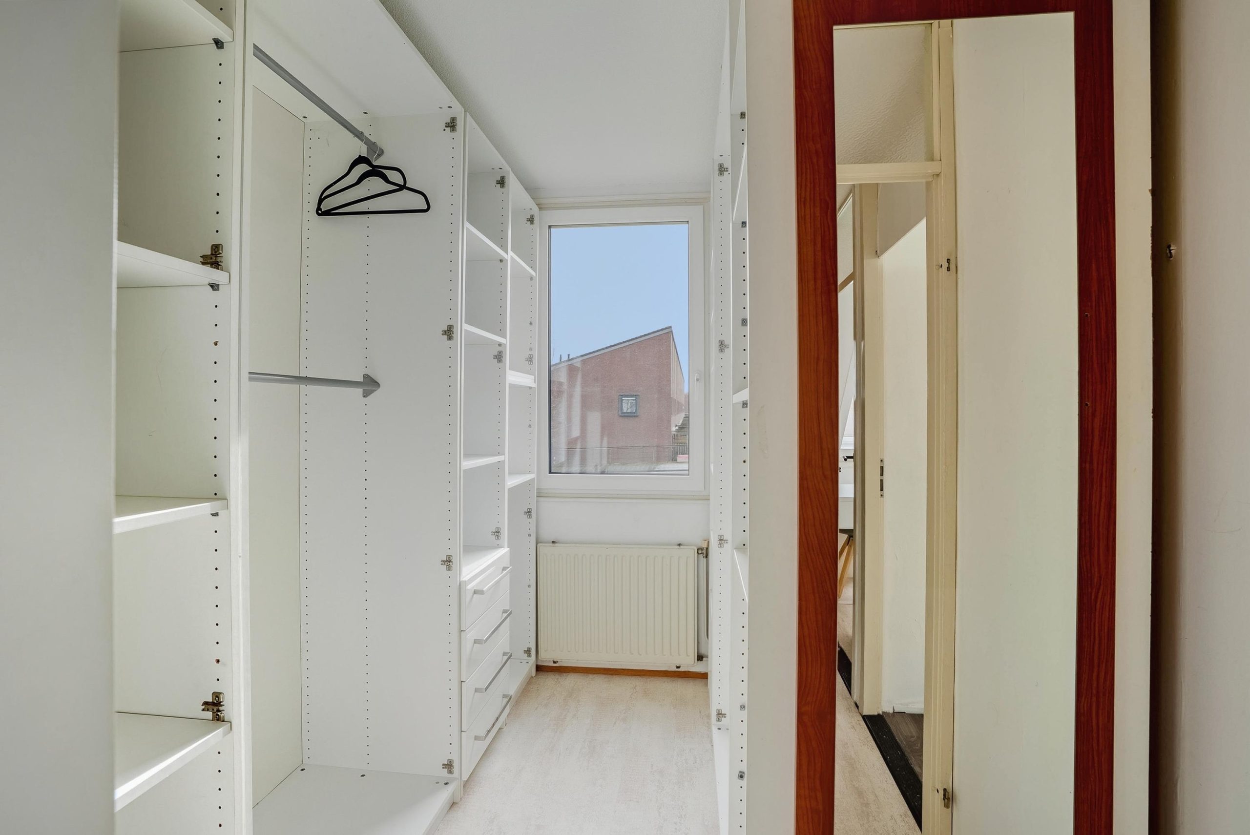 Via een vaste trap bereik je de tweede verdieping. Deze verdieping is momenteel ingericht als één ruime slaapkamer. Hier bevindt zich ook de cv-opstelling. De ruimte biedt mogelijkheden om verder in te delen, bijvoorbeeld voor een extra werkplek of bergruimte. Ook hier kan eventueel witgoed worden geplaatst.