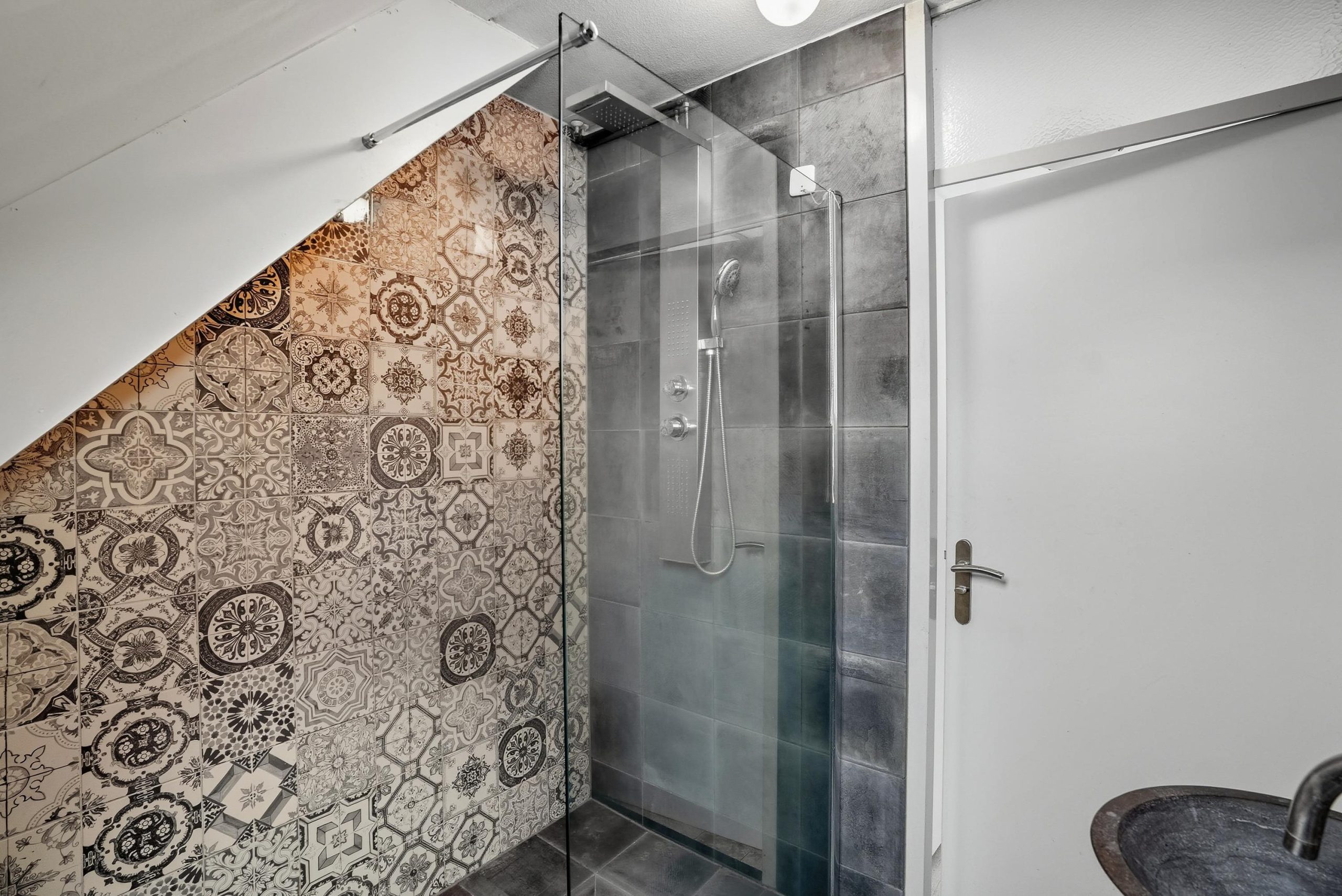 Op de eerste verdieping zijn drie slaapkamers en een badkamer. De badkamer is netjes en voorzien van een inloopdouche, wastafel en de mogelijkheid om het witgoed te plaatsen.
