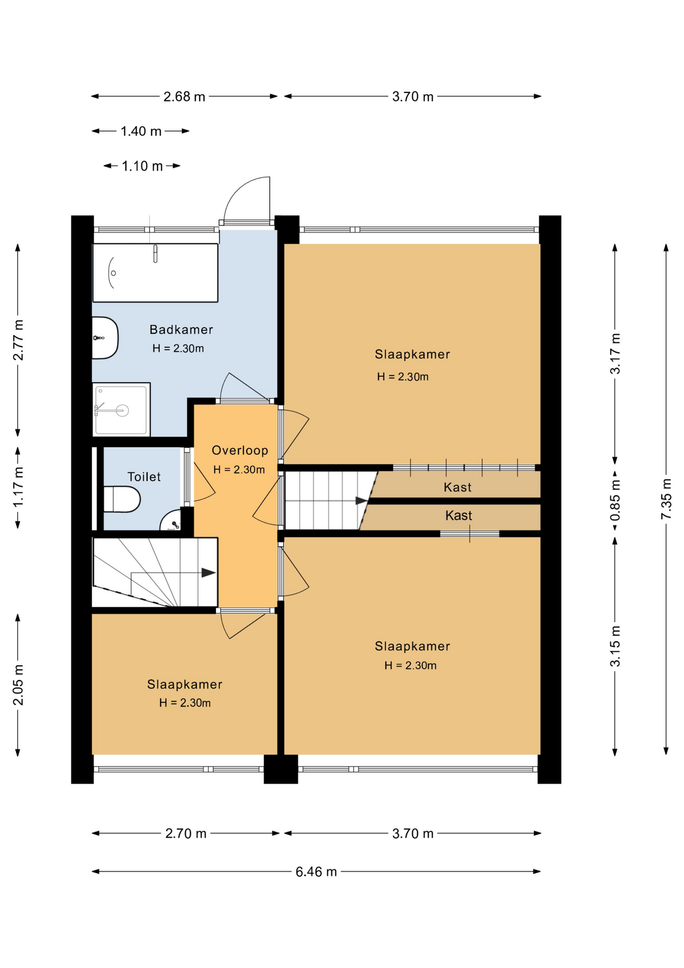 Op de eerste verdieping zijn drie slaapkamers, een separaat tweede toilet en de badkamer met ligbad, douche en wastafel. Via een vaste trap is de grote zolder bereikbaar. Deze ruimte is momenteel niet verder ingedeeld, maar biedt volop mogelijkheden voor bijvoorbeeld een extra slaapkamer, werkruimte of hobbykamer.