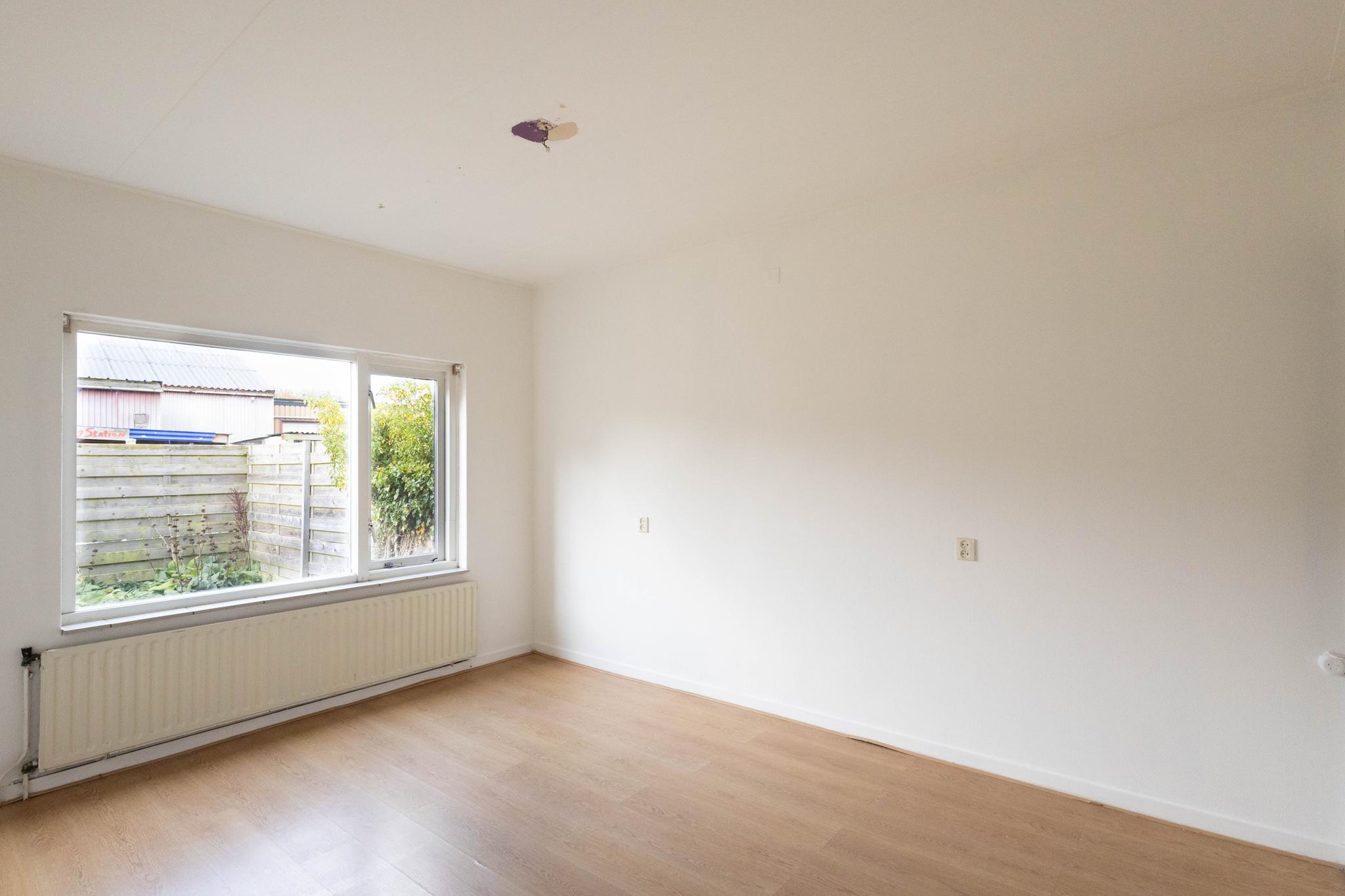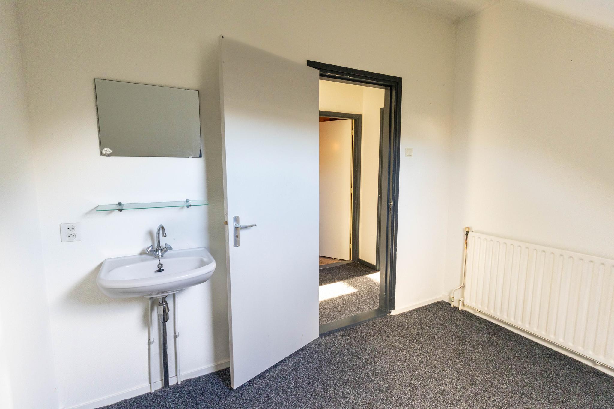 Ruime hal / entree met opgang en meterkast. Toilet met fonteintje. Badkamer met wastafel en inloopdouche. De badkamer is gedateerd en zal vervangen moeten worden. Ruime woonkamer met een aangename lichtinval door de grote raampartijen. Half open keuken met een eenvoudige opstelling. Bijkeuken met achter entree en aansluiting voor de witgoedopstelling. Slaapkamer I met vaste kast onder de trap.